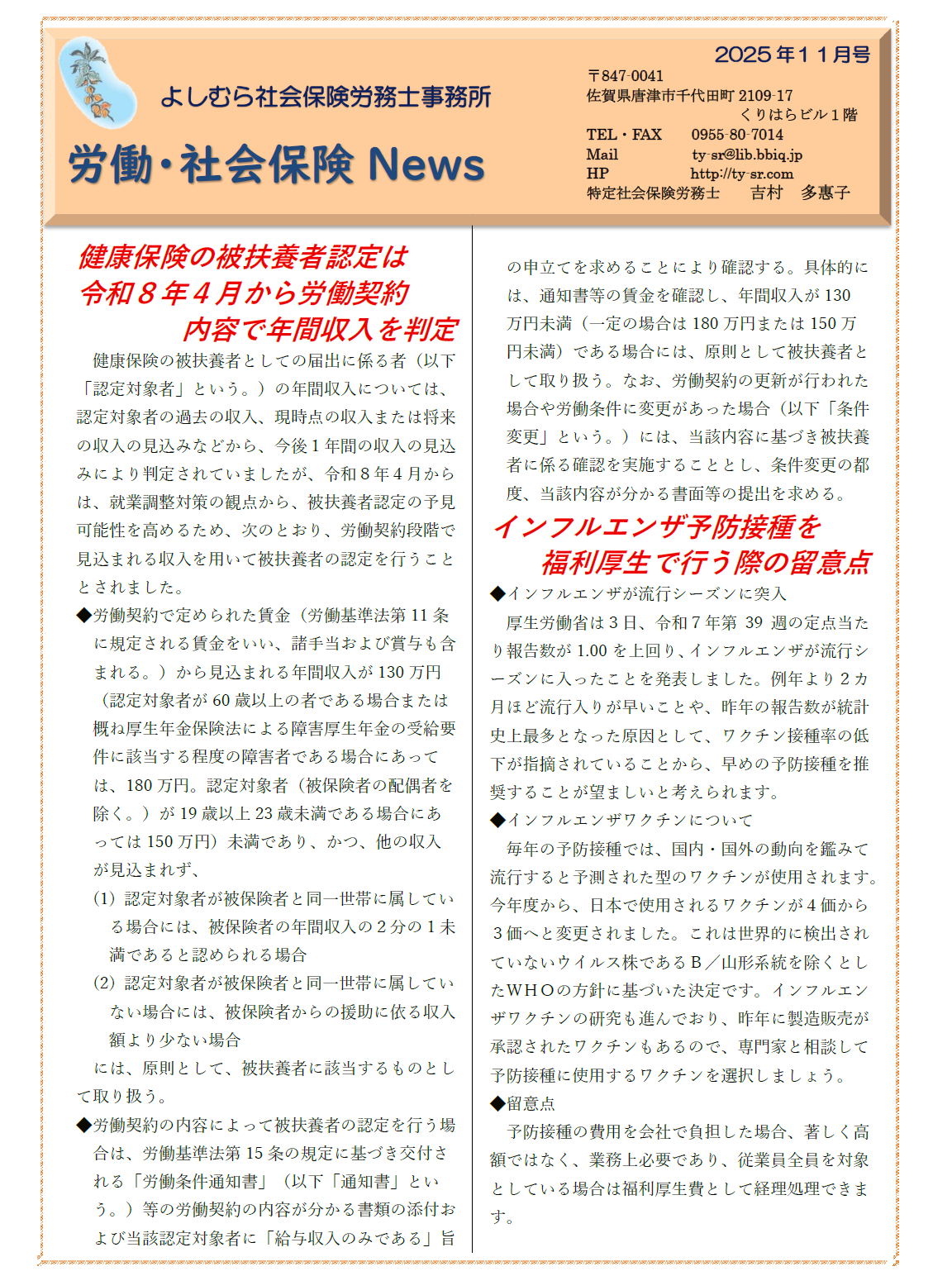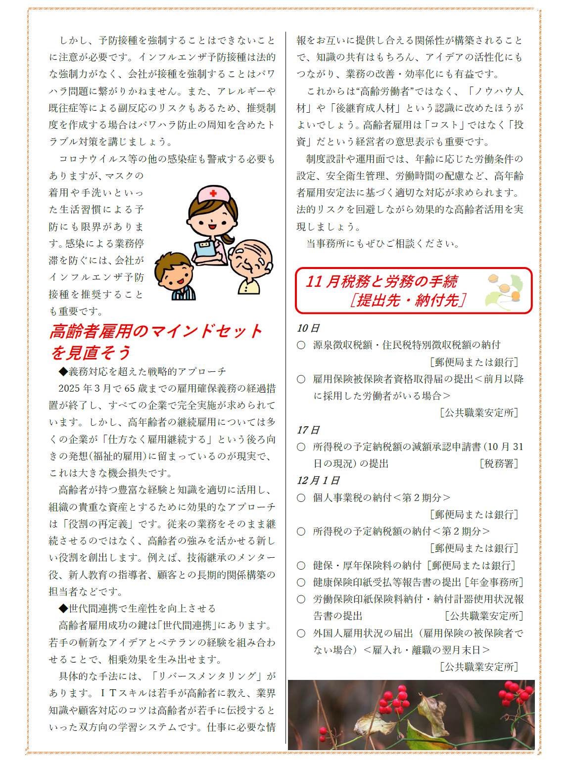・インフルエンザ予防接種を福利厚生で行う際の留意点
